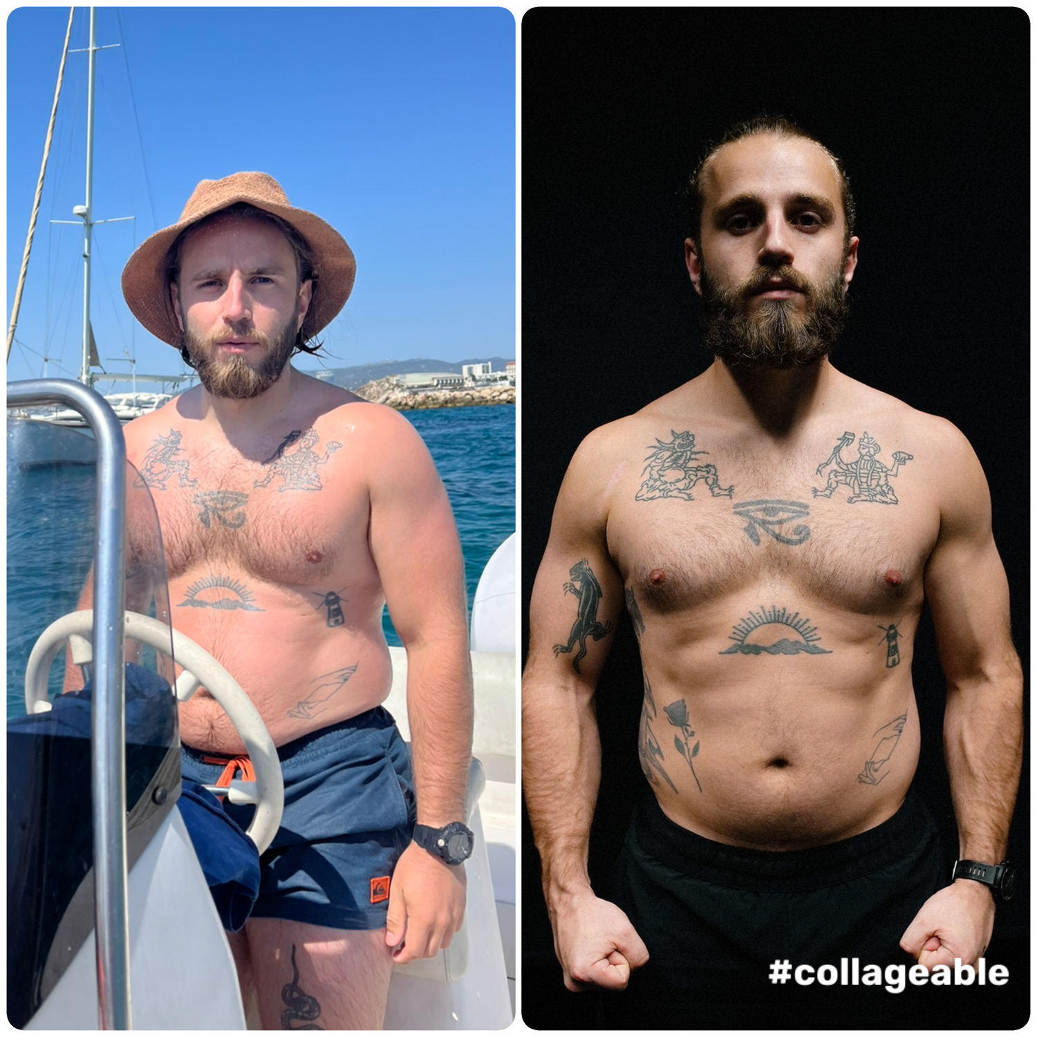 Je suis aussi passé par la phase dans laquelle tu te trouves. Je n'ai pas fait attention à mon hygiène de vie pendant un moment, et un matin je me suis réveillé avec 10kg de trop. C'est en voyant la photo de gauche, pendant mes vacances, que j'ai réalisé.