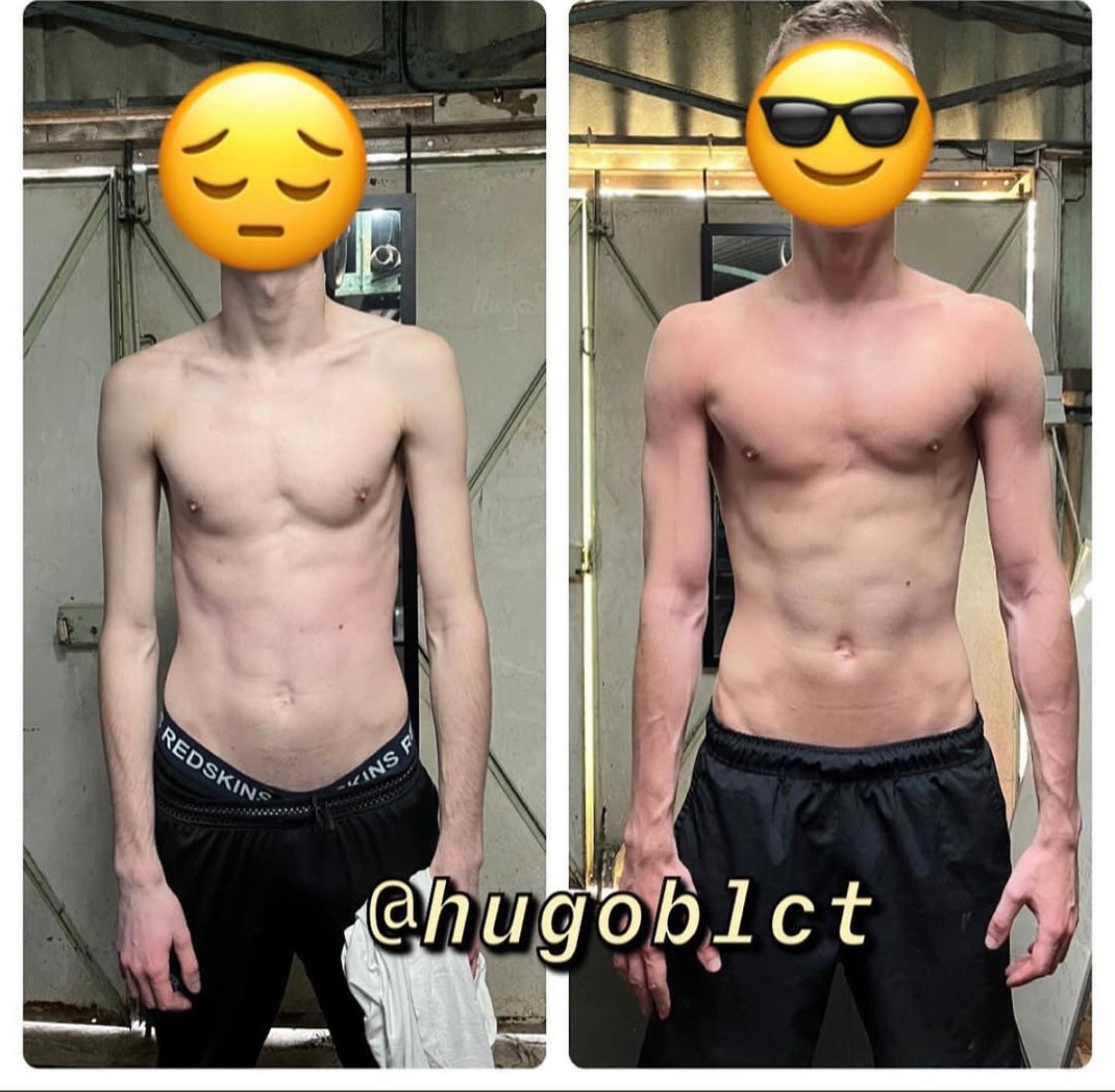 "Je me trouvais trop mince et je n'arrivais pas à prendre de muscle avec mes entraînements. Grâce aux entrainements d'Hugo, j'ai rapidement pris du muscle en 3 mois, et ce n'est toujours pas fini!"